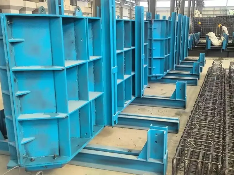 يتم تصنيع قوالب الخرسانة الفولاذية من صفائح فولاذية ومقاطع فولاذية، وتتميز بالقوة العالية والصلابة ودقة الأبعاد. يضمن السطح الأملس للقالب الفولاذي خرسانة مصبوبة عالية الجودة، مما يسمح بالاستخدام المتكرر ومعدل دوران مرتفع. غالبًا ما يتم استخدامه في الإنتاج واسع النطاق للمكونات القياسية، مثل إنتاج المصانع بكميات كبيرة لمكونات المباني الجاهزة وبناء المباني المعيارية.